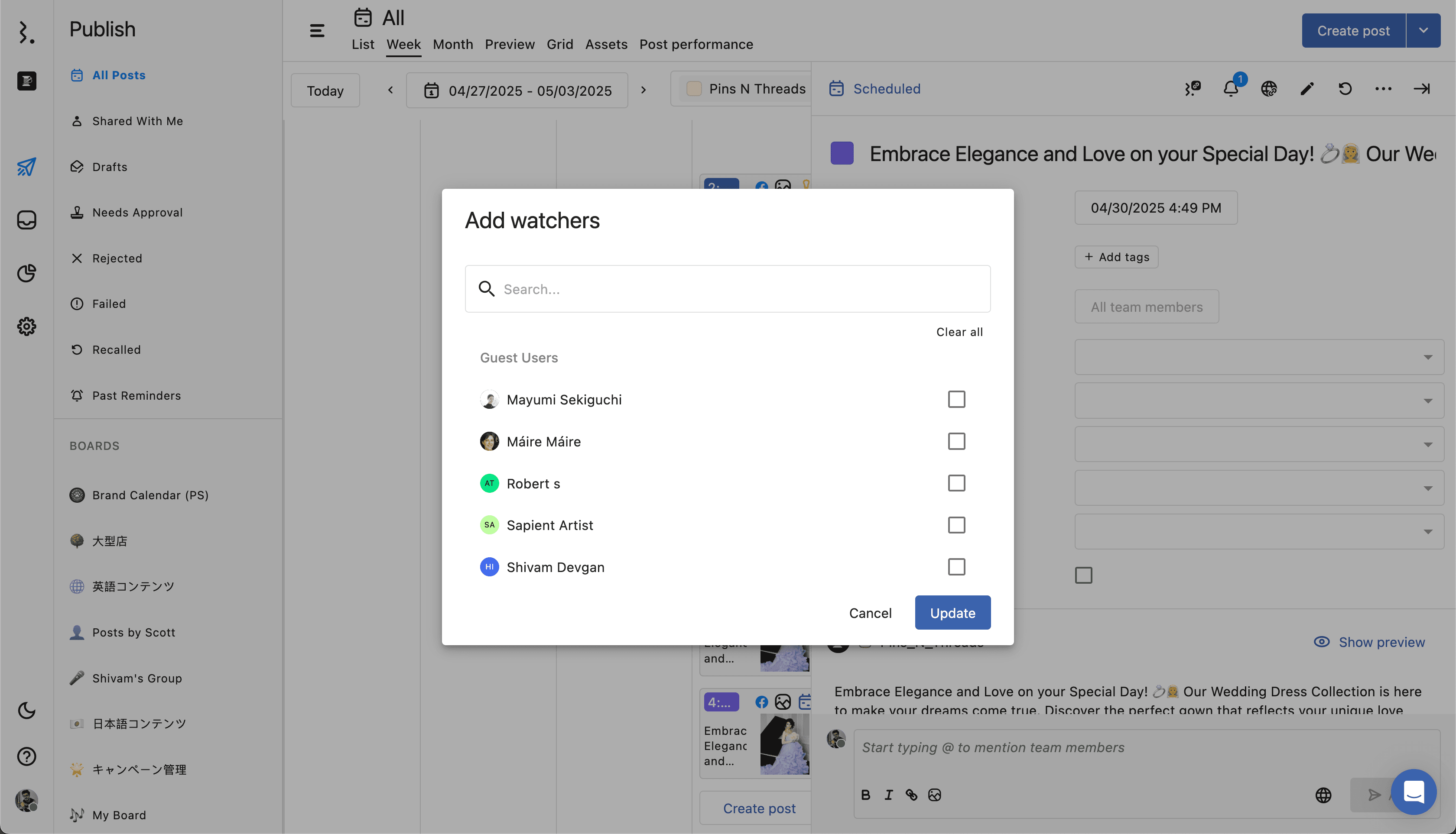 2. Can guest users see everything in our account? No. Guest users can only view posts they’ve been invited to review. They have no access to your dashboard, calendar, or other posts unless specifically shared.