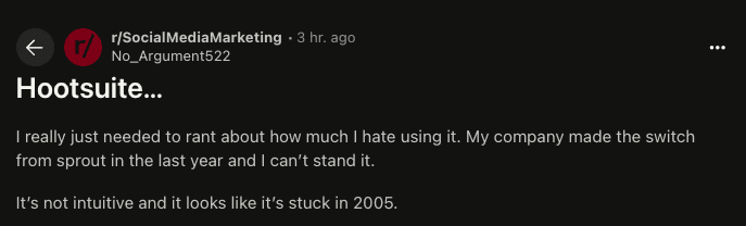 This is the organic (and actual) sentiment about Hootsuite after trying it for some time.