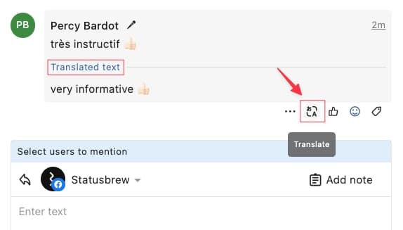 Translate any conversation in a foreign language in Engage and connect with audiences from across the world. Open any conversation you want to translate, hover over it, and click on the Translate icon to view the translated version.