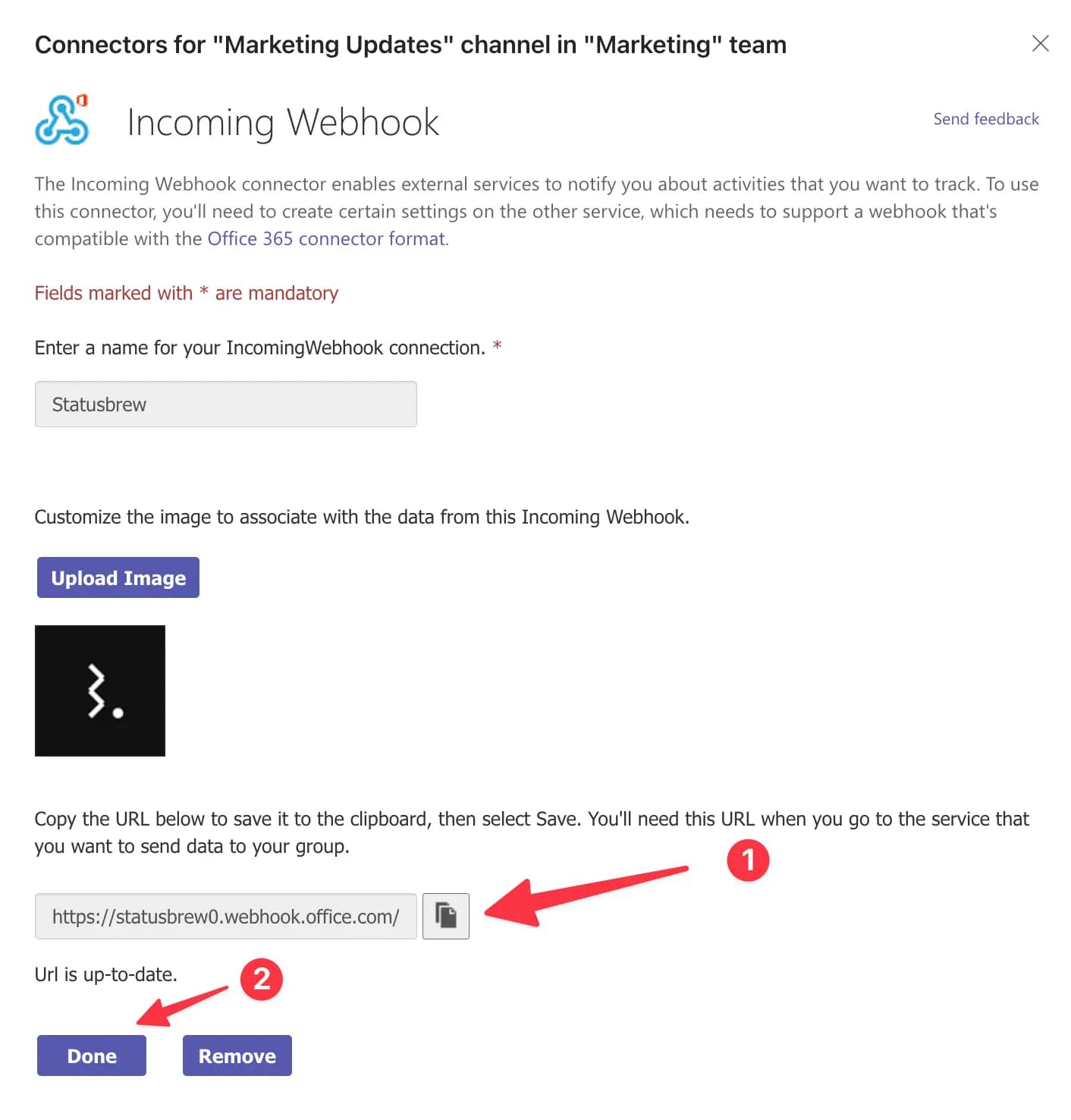 Copy the URL, save it to your clipboard and click on Done. You'll need to paste it in Statusbrew when you'd be setting up the connection