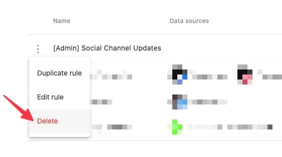 If you want to stop the alerts on a temporary basis, instead of 'Deleting the rule' you can 'Pause the rule.' It'll stop the execution of the rule and Slack alerts on a temporary basis unless you activate it back. You can 'Pause a rule' in the 'Edit rule window' of the rule.