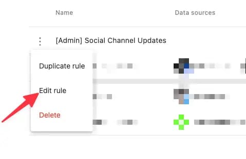From all the rules created, go to the rule you want to edit and click on the three dots option beside the rule
