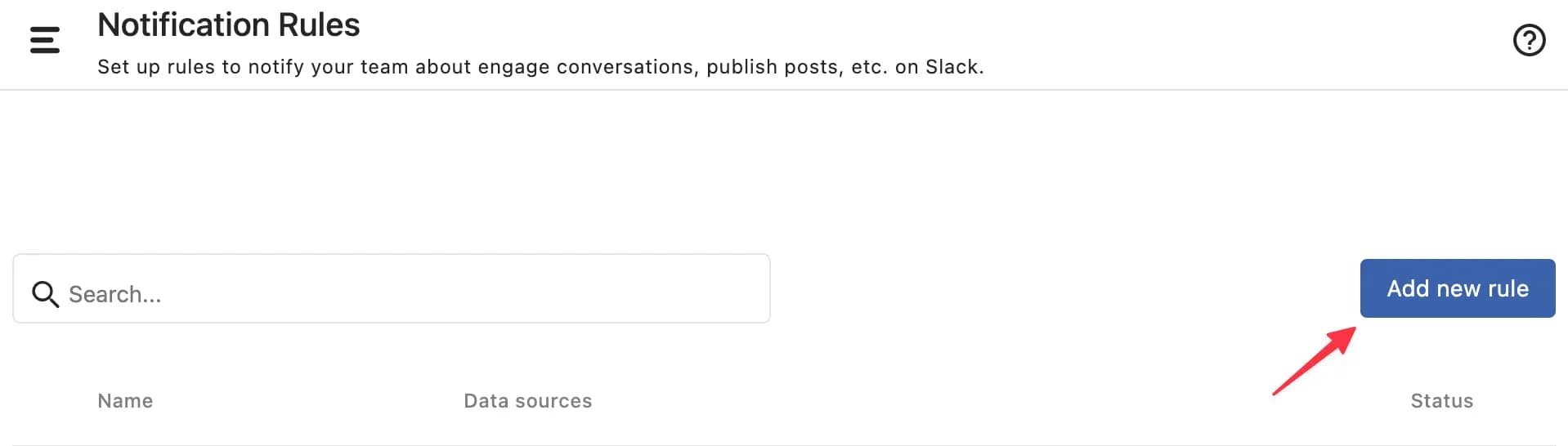 With your Slack connected, you can now set up Alerts. This step is triggered automatically when you add a new workspace. You can manually go to this screen via "Statusbrew Home > Settings > Integrations > Slack - Click Manage" and Click on Manage Slack Alerts and then click on ADD new rule.