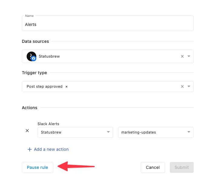 Here's how you can edit or remove Slack alerts in Statusbrew: